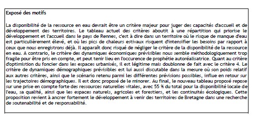 La solidarité entre territoire de Bretagne passera par un équilibre retrouvé. Elle passera notamment par un dimensionnement du développement à venir des territoires à la ressource en eau disponible localement. La proposition de répartition qui nous est faite ici passe à côté de cet enjeu. Elle ne prépare pas l’avenir, mais essaie de maintenir les logiques du passé. Nous proposons un autre choix.